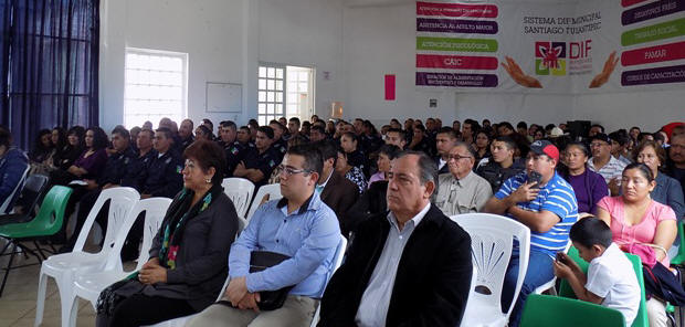 Al evento encabezado por el mandatario santiaguense, Lic. Jesús Alberto Aguilar Hernández, acudió también el Lic. Julio Salazar Paredes, titular de la Secretaria Técnica de Implementación de dicho sistema, quien durante su mensaje señaló que tal procedimiento constituye un cambio en la cultura de la legalidad y en la forma de procurar e impartir justicia penal en el Estado Mexicano, pues todos los actos procesales se realizarán de manera oral y sólo una mínima parte en forma escrita, para lo que se han creado instrumentos procesales que permiten el respeto irrestricto a los derechos fundamentales tanto de la de la víctima como del imputado. Aguilar Hernández, agradeció la herramienta de difusión, pues indicó que de esta manera, las personas que intervengan en un procedimiento penal conocen cuáles son sus derechos y tendrán las mismas oportunidades para presentar la acusación y la defensa. · Alumnos del Instituto Tecnológico Latinoamericano de la capital del estado, fueron los encargados de ejemplificar mediante un caso ficticio el nuevo proceso de justicia, en el que se observo cómo es que los derechos de las partes en todas las etapas del proceso serán vigilados por un Juez, el cual velará siempre por su correcta aplicación. Finalmente se dieron a conocer algunos de los principales cambios en la nueva legislación, tales como: · La forma de investigar los delitos es más ágil y eficaz. · La mayor parte de las audiencias son públicas, permitiendo una mayor transparencia en el proceso de impartición de justicia penal. · Los juicios son orales y continuos, hasta que se llegue a su resolución. La sentencia que en el procedimiento se dicte deberá de ser explicada. · Se protege la identidad y los datos personales de los menores de edad. · Es un sistema ágil, confiable, imparcial y ofrece resultados satisfactorios para las partes que intervienen en él. La presunción de inocencia, es el presupuesto fundamental de todo el sistema de justicia penal de carácter acusatorio, lo que significa que: “El detenido es inocente hasta que se demuestre su culpabilidad en un juicio en el que se cumplan las formalidades establecidas por la ley.Festival de Muertos 2015 en Santiago Tulantepec En Santiago Tulantepec instalan centro de acopio para televisiones analógicas DIF de Santiago Tulantepec entrega apoyos funcionales Funcionarios de Santiago Tulantepec reciben charla sobre la Nueva Ley General de Transparencia