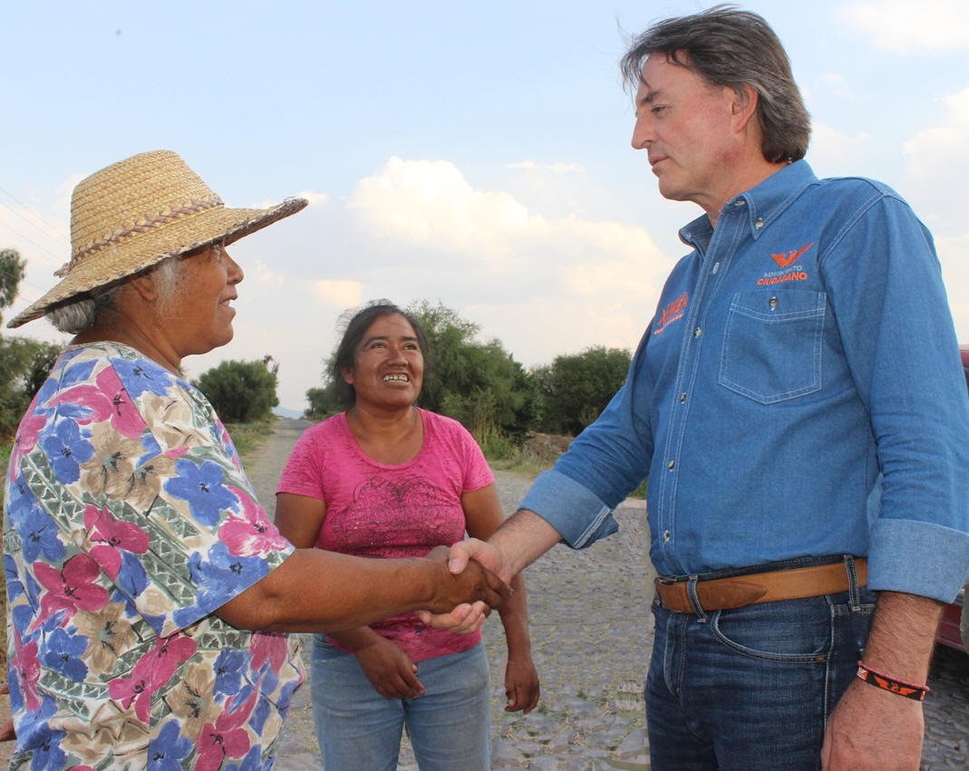 "Es la primera vez que nos visita un candidato a Gobernador, recalcaron, la primera vez que asiste a nuestra pequeña comunidad, le reconocemos y le agradecemos que venga acompañado de profesionistas que dispongan de tiempo y atención para solucionar nuestro problema de agua que aquí tenemos, no traes cosas extravagantes como otros, y por eso "aquí en La Nopalera te vamos a dar la patada de la buena suerte para que llegues a ser gobernador".