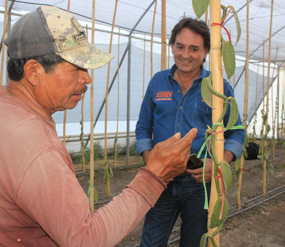 los campesinos emprendedores de Hidalgo: Francisco Xavier Alfajayucan, Hgo., 7 de mayo del 2022.- Juan Castillo Zaragoza de la comunidad La Nopalera, invitó a Francisco Xavier para demostrarle su invernadero de vainilla.