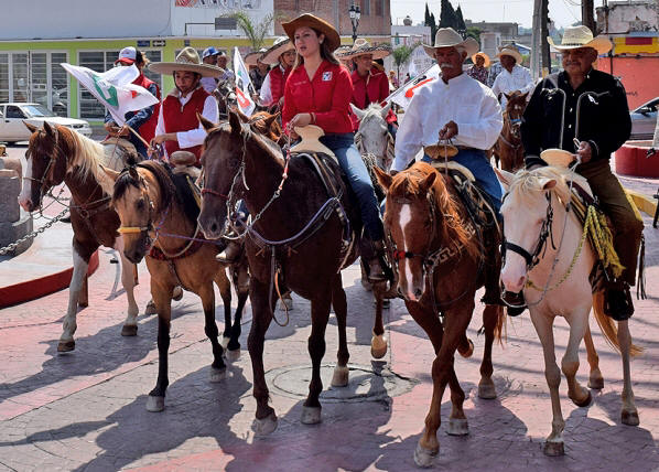 caballo que la acompañaron, y los exhortó a votar por el partido que