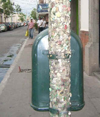 El Monumento al Chicle en la calle de Independencia. Muestra inverosímil de